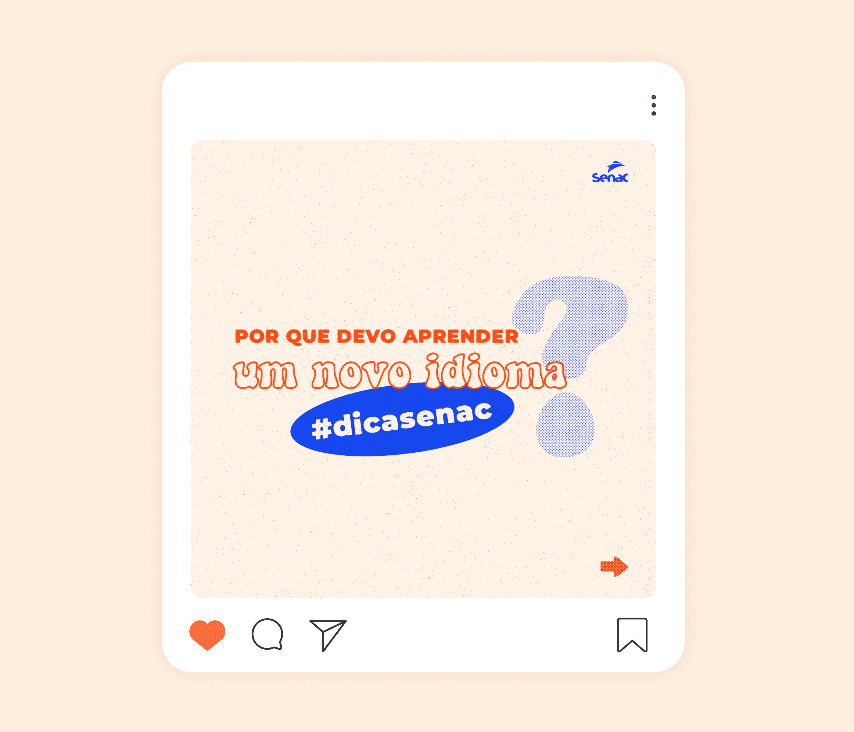 🇧🇷 Postagem para redes sociais que integra uma iniciativa do Senac São Paulo para divulgar os cursos de idiomas da instituição.